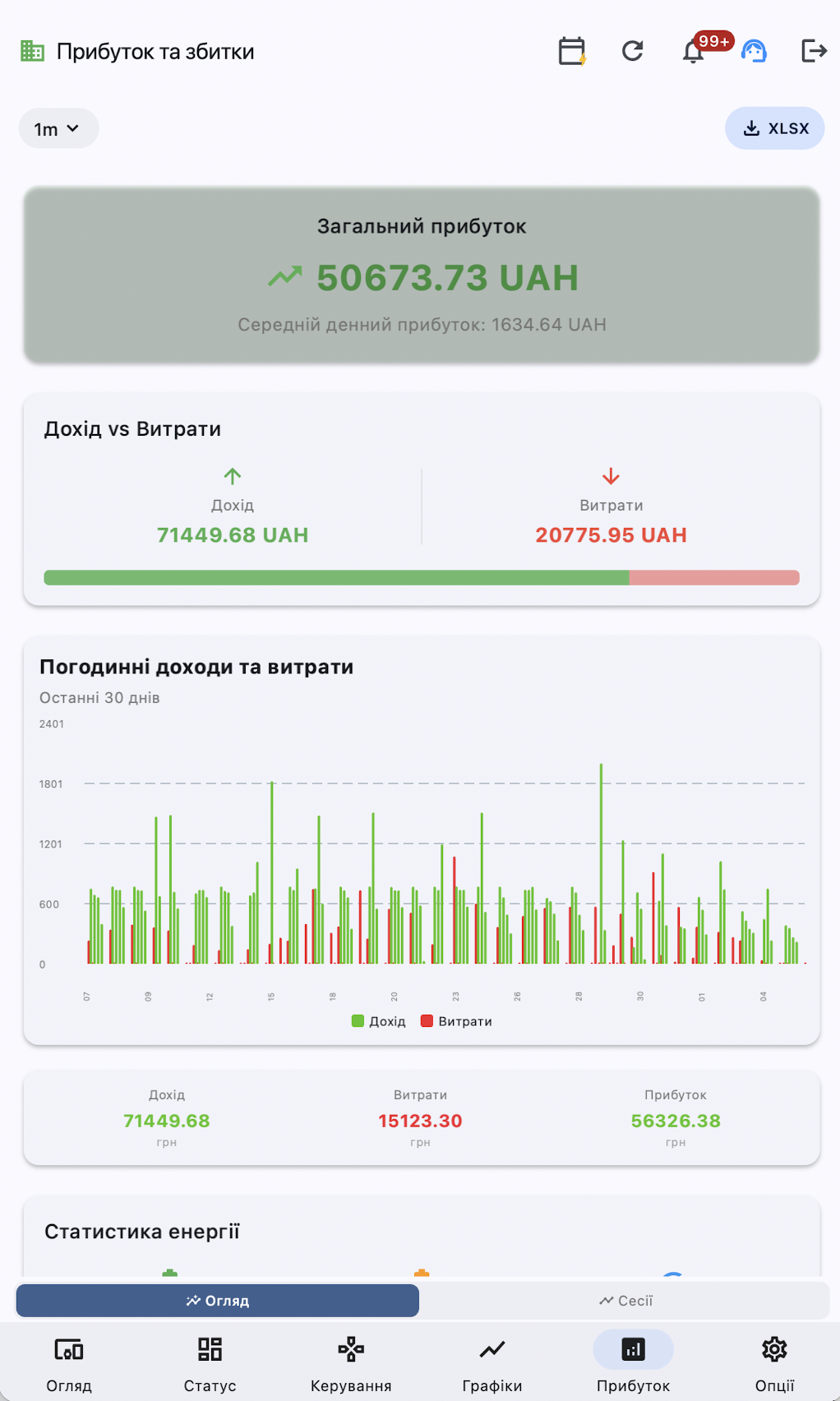 - Автоматизоване сценарне керування. Програма налаштовує роботу всієї системи (генерація, накопичення та споживання) відповідно до вашої мети.